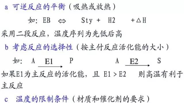 根据反应原料的特性和产品的质量要求,以及反应过程的特点,实际反应过程可能会出现下列情况: