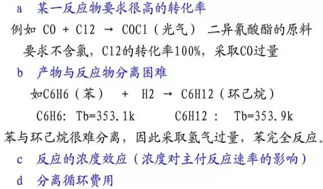 由于反应不是全部,剩余组分在产物处理中被分离出来,一般应循环回到反应设备中继续参与反应。