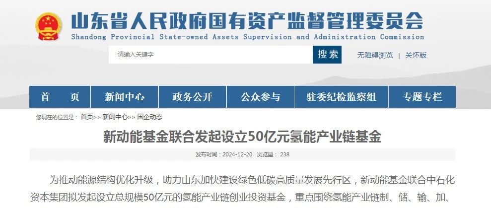 山东省曾表示,新基金重点围绕氢能产业链制、储、输、加、用上下游及周边相关核心技术、关键材料及重要项目进行投资,着力打造氢能产业投资生态链闭环。