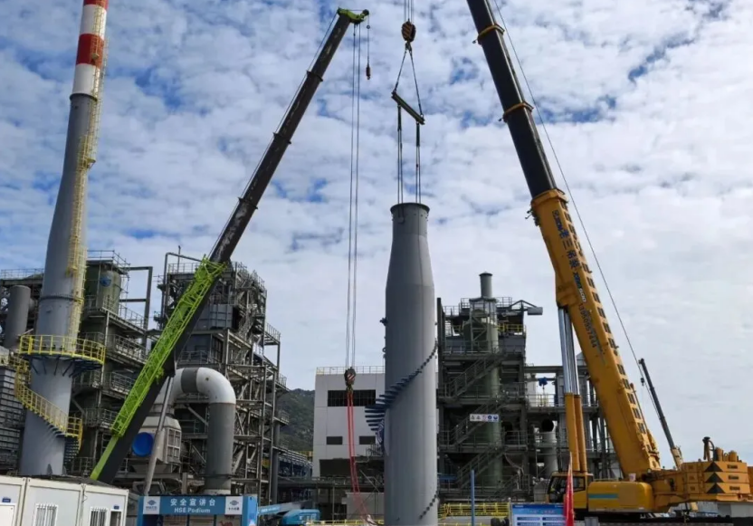 近日,随着最后一节烟囱精准完成吊装对接,中国化学天辰公司总承包的福建中沙古雷全厂焚烧项目核心设备——废固焚烧系统50米高烟囱顺利实现整体安装就位。这一关键节点的圆满达成,标志着项目大型设备安装工程全面收官,正式迈入机械竣工的最后冲刺阶段。