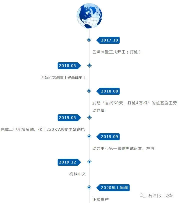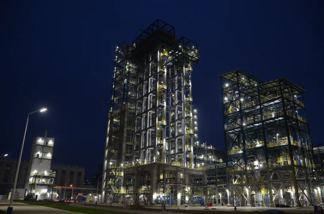 HDPE装置于2018年05月6日开工,一路砥砺前行。2018年8月11日地基开挖,2019年4月5日环管反应器吊装,2019年10月30日变电所受电,2020年1月12日脱气框架模块化吊装完成,2020年5月10日挤出机主电机一次性试车成功。