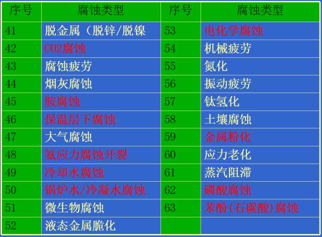 从这63中腐蚀类型或者叫腐蚀机理上来看,化工设备的腐蚀情况非常复杂。化工材料,设备环境,介质条件等等方面都是设备造成腐蚀情况的诱因或者条件。因此不同条件环境下的防腐措施也是不尽相同。要想了解各种防腐措施,就必须先清楚腐蚀的类型有哪些?