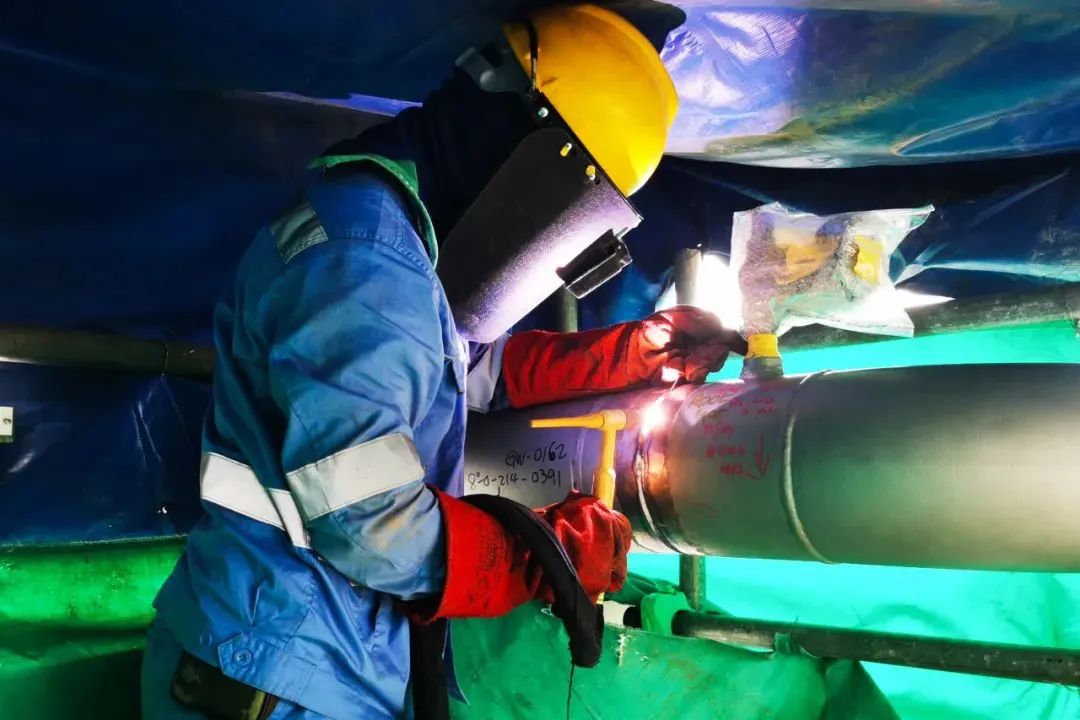 在管道焊接攻坚阶段,项目部通过施工推演、技能培训、跟踪反馈等机制,建立了系统科学的质量管理流程,加强质量过程管控。尤其针对“工程心脏”的黄金焊口,项目部采用智能传感器实时捕捉电流电压、焊缝温度等18项关键参数,构建起毫米级精度的质量监控体系,焊缝合格率也从行业平均95%跃升至98%。