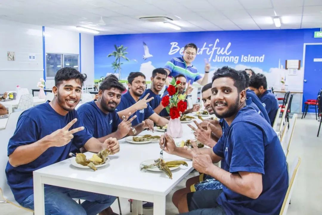 在新加坡裕廊岛工业区,项目部一起共度了首个“非遗”春节。来自不同国家的员工们欢聚一堂,写福字、挂春联、吃年夜饭,这个充满东方韵味的场景,正是五建公司深化跨文化融合的生动写照。