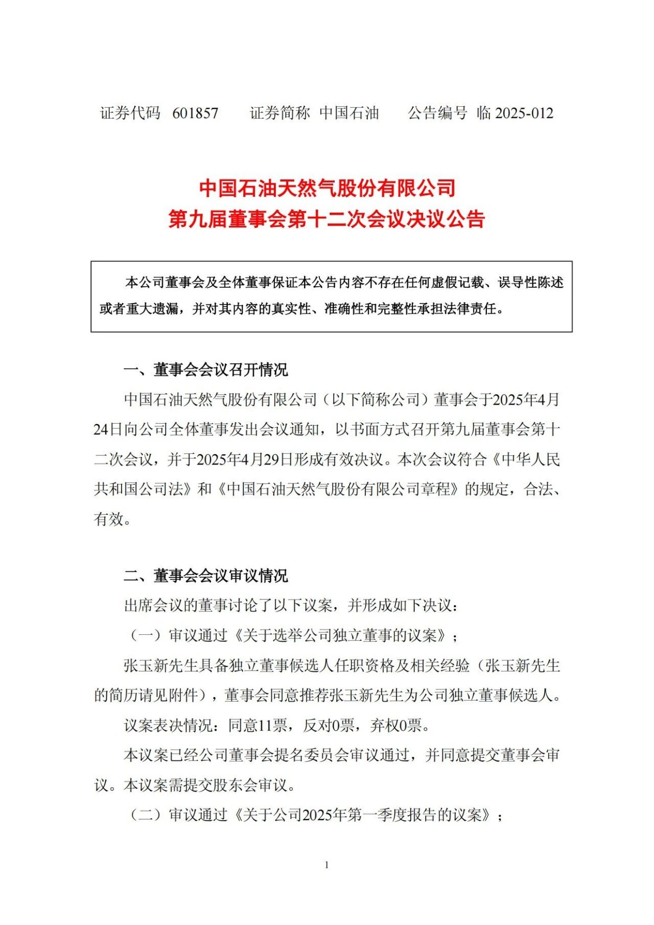 据中国石油天然气股份有限公司公告显示,董事会同意推荐张玉新先生为公司独立董事候选人。