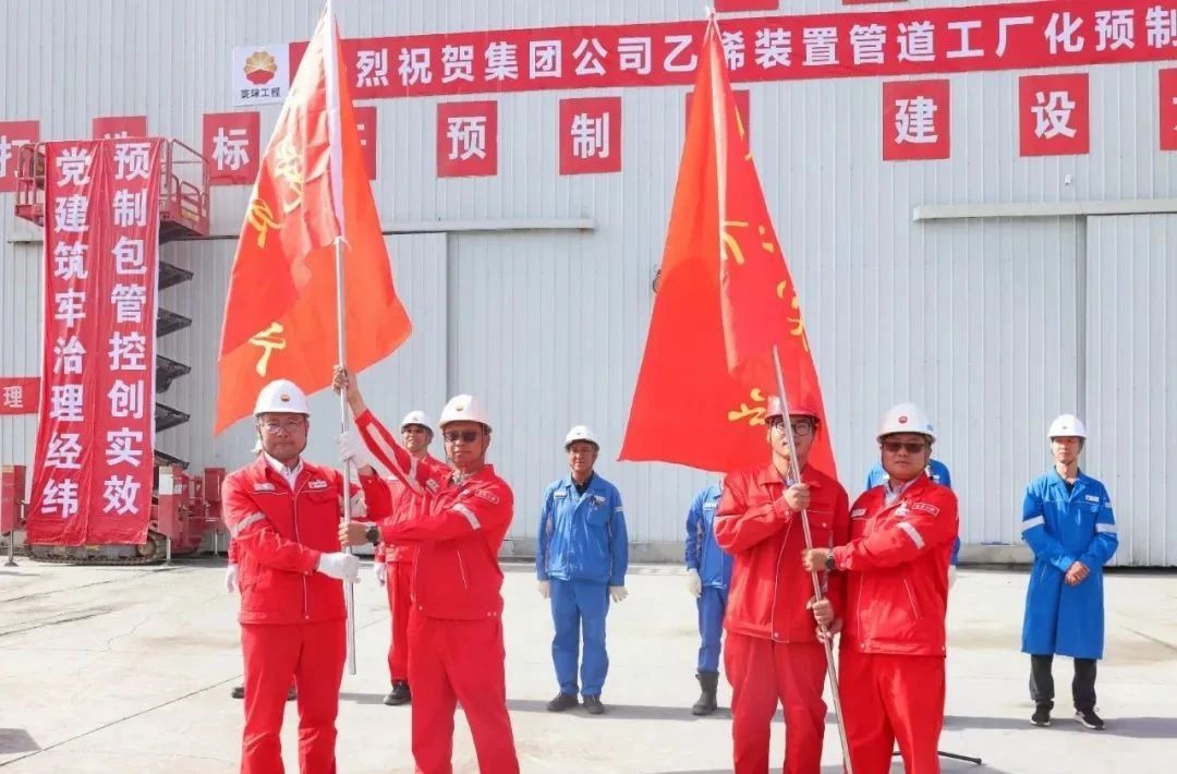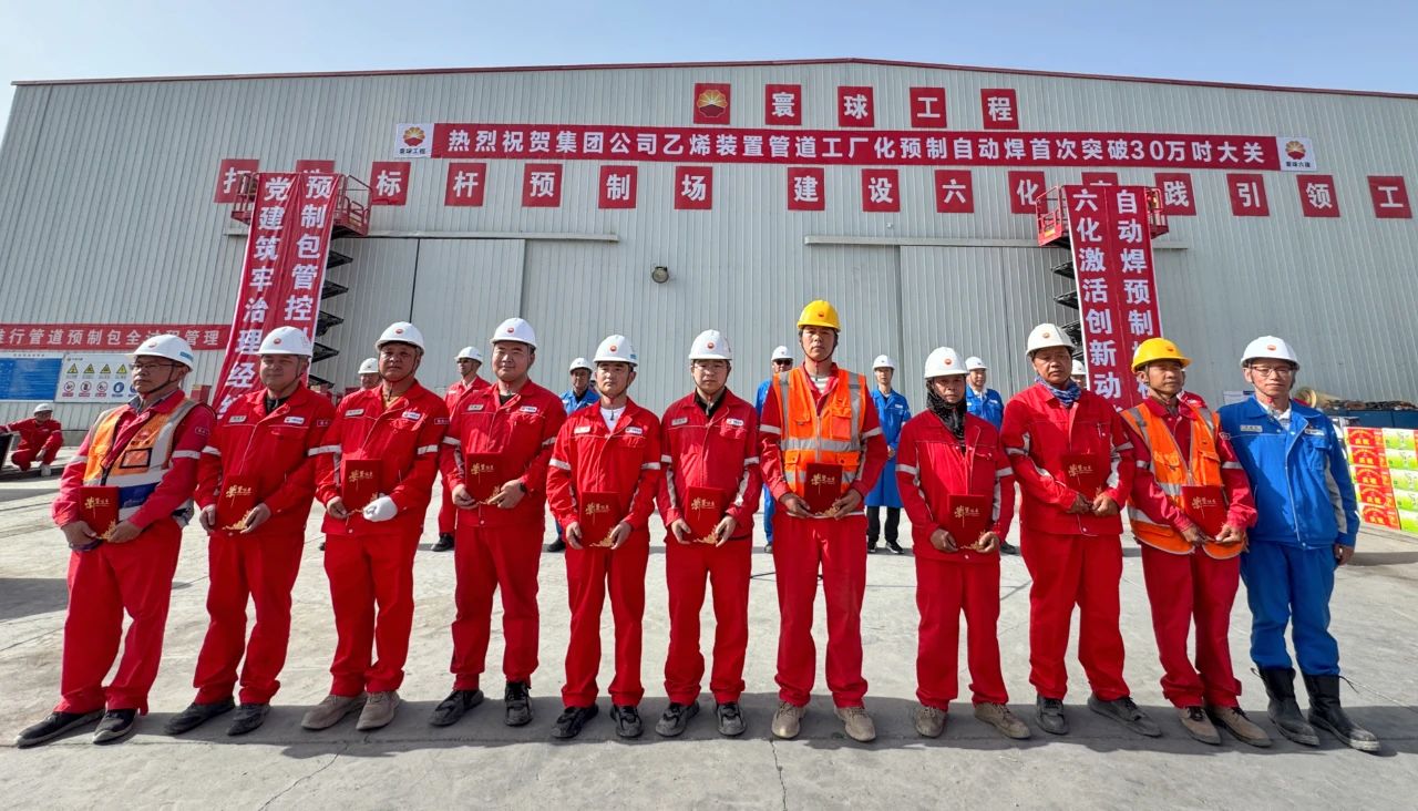 6月10日上午,在塔里木项目部管道预制厂隆重举行“集团公司乙烯项目乙烯装置管道工厂化预制自动焊首次突破30万吋大关”表彰仪式。仪式上,寰球六建公司项目部介绍了预制场建设及管道工厂化预制阶段成果,汇报后续项目推进情况,对先进集体和个人进行了表彰,为党员突击队和青年突击队授旗。