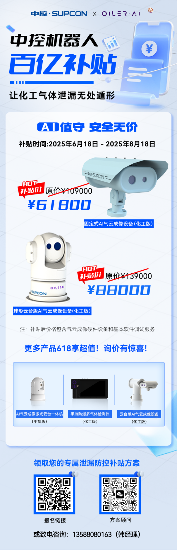 满足政策要求、提升本质安全水平刻不容缓,而投入成本不应成为智能化升级的阻碍。中控技术与欧熠乐联合推出“百亿补贴计划”,限时低至6折!帮助企业以极具竞争力的综合投入,快速部署这套主动、智能、可视化的AI气云成像监测防御体系程。