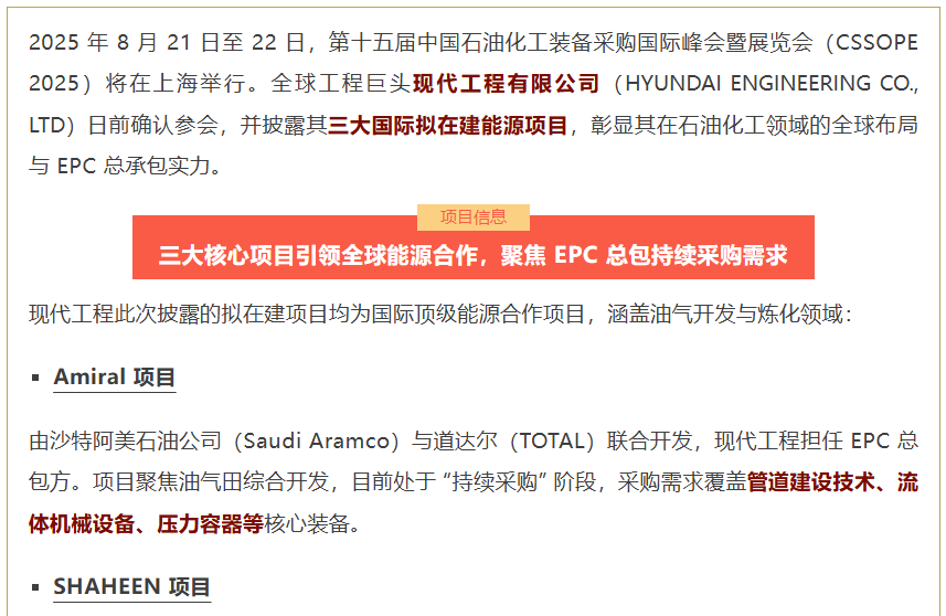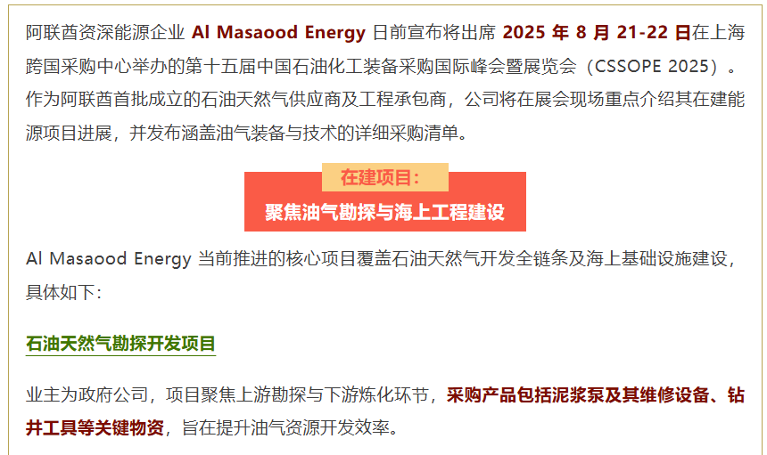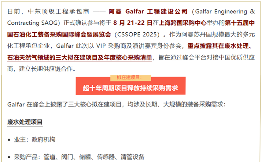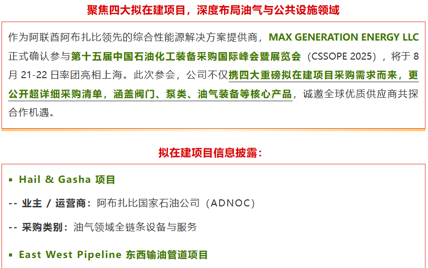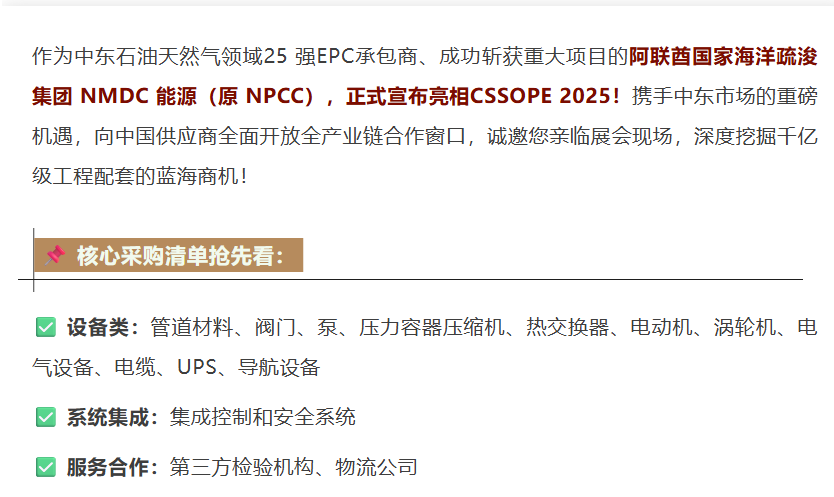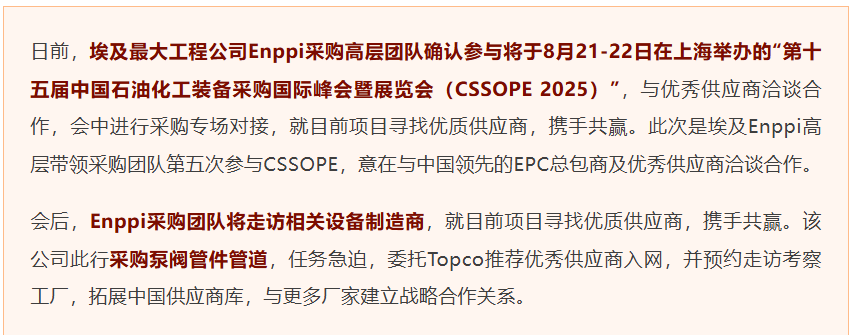 (另:目前正为参与CSSOPE 会的供应商优先办理俄罗斯石油ROSNEFT、阿曼石油PDO、阿联酋ADNOC、埃及ENPPI 工程公司、埃及MOPCO 化肥厂等主要石油化工公司的供应商入网,详询:158 0112 8545 秦女士。)