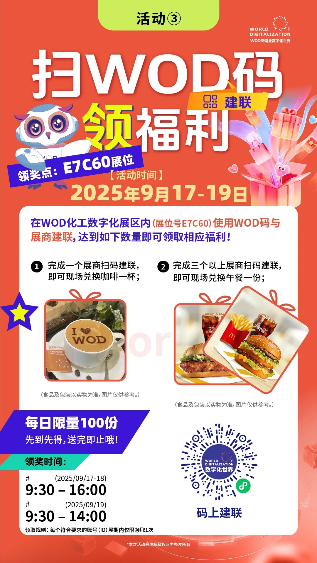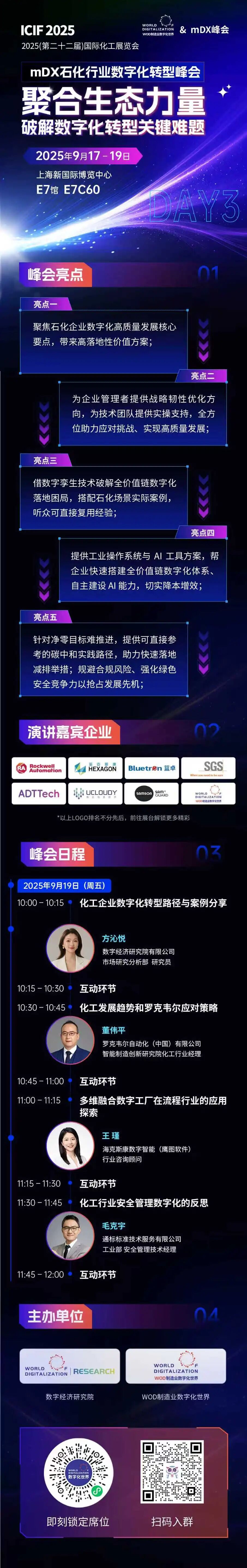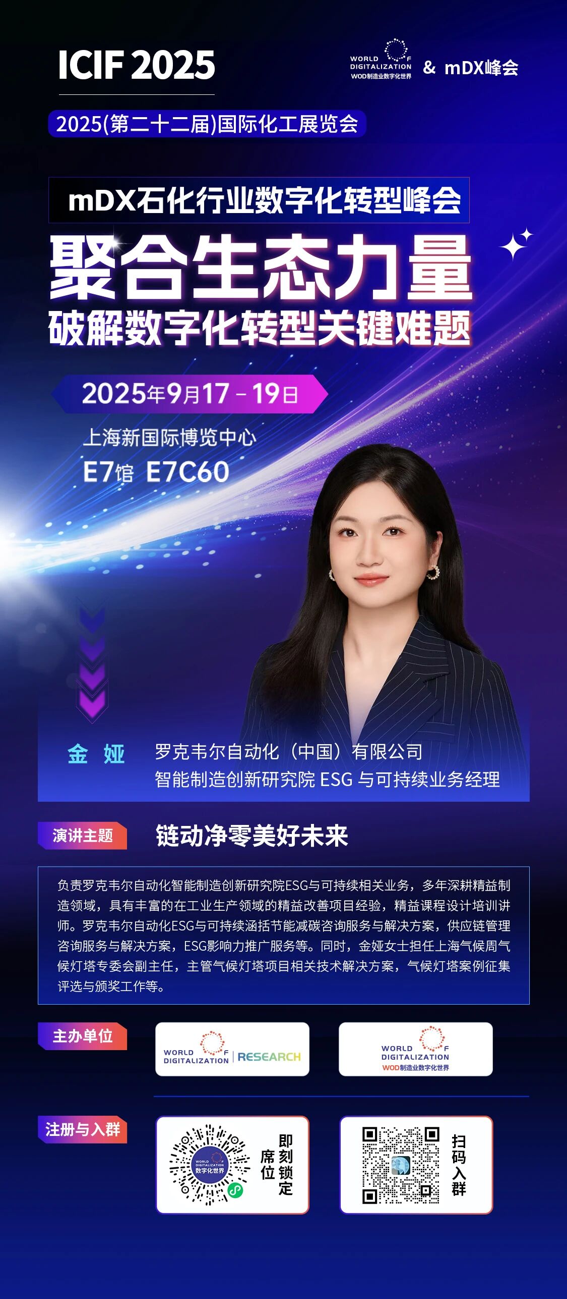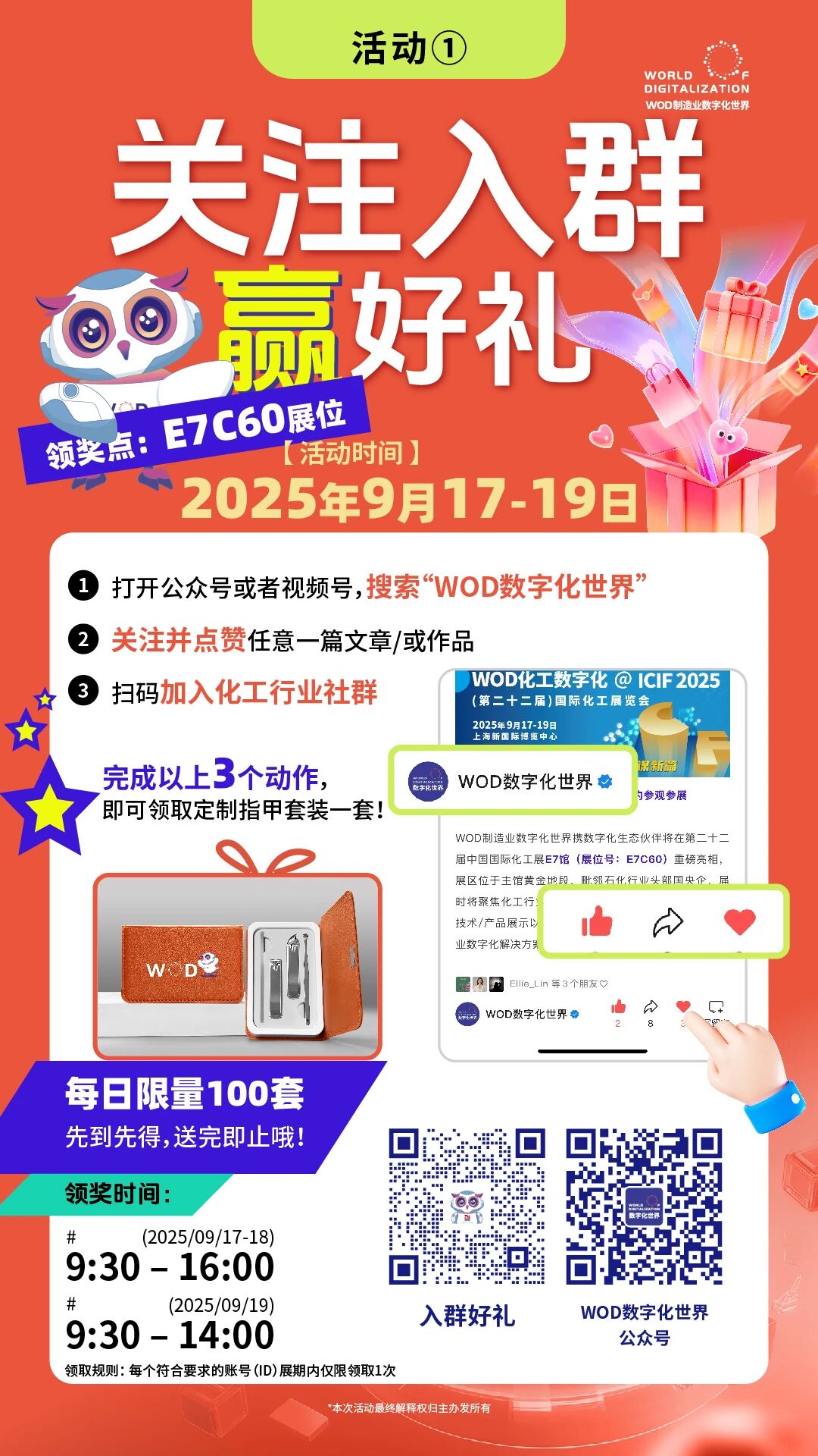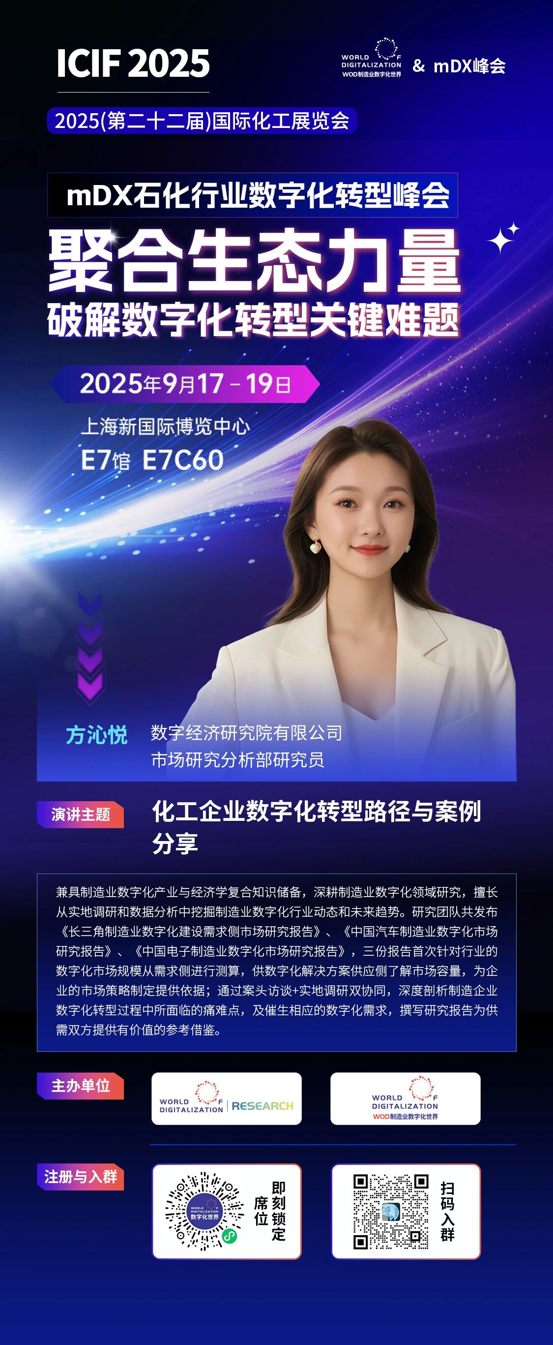 WOD制造业数字化世界携数字化生态伙伴将在第二十二届国际化工展E7馆(展位号:E7C60)重磅亮相,将聚焦化工行业生产、安全、环保等核心场景,通过技术/产品展示以及同期举办mDX石化行业数字化转型峰会,打造“一站式化工企业数字化解决方案集群专区”。