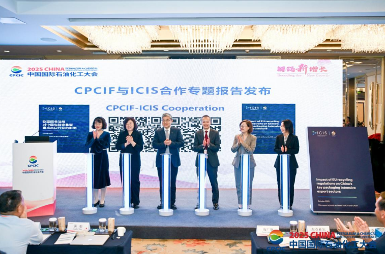 本次会议上,中国石油和化学工业联合会与国际咨询机构ICIS联合发布《欧盟循环法规对中国包装等重点出口产业的影响研究》报告。CPCIF国际部满娟处长、ICIS的全球咨询负责人Tin Nguyen及中国咨询总监张玲凤共同出席并参与发布。