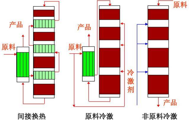 多段绝热反应器按段间换热方式的不同可分为三类: