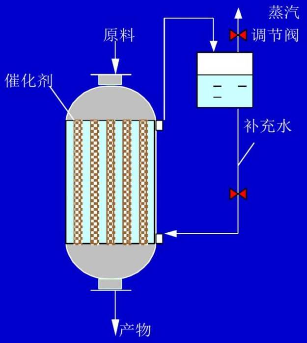 通常在管内充填催化剂,反应气体自上而下通过催化剂床层进行反应,管间通载热体 (在用高压水或用高压蒸汽作热载体时,则把催化剂放在管间,而使管内走高压流体)。