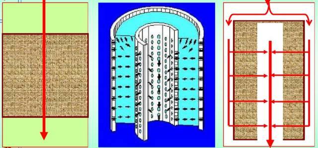 下图第一个为轴向绝热式固定床反应器,后两个为径向绝热式固定床反应器。