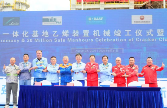 2025年10月7日,巴斯夫湛江一体化基地丙烯酸丁酯装置投产、乙烯联合装置以及所有一体化石油化学品装置完成机械竣工。