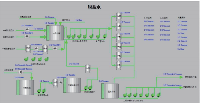 脱盐水系统和冷却水系统在污水处理工艺中承担着提供高品质水源和设备降温的重要任务,脱盐水系统及冷却水循环流程。脱盐水的主要目标是进一步去除污水中的溶解性固体(如盐类)和其他溶解性有机污染物,确保出水达到回用或排放标准。