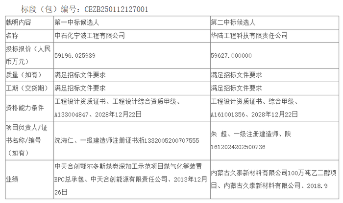 2026年2月9日,西部能源准东20亿立方米年煤制天然气项目全厂系统工程EPC总承包公开招标中标候选人公示候选人公示。