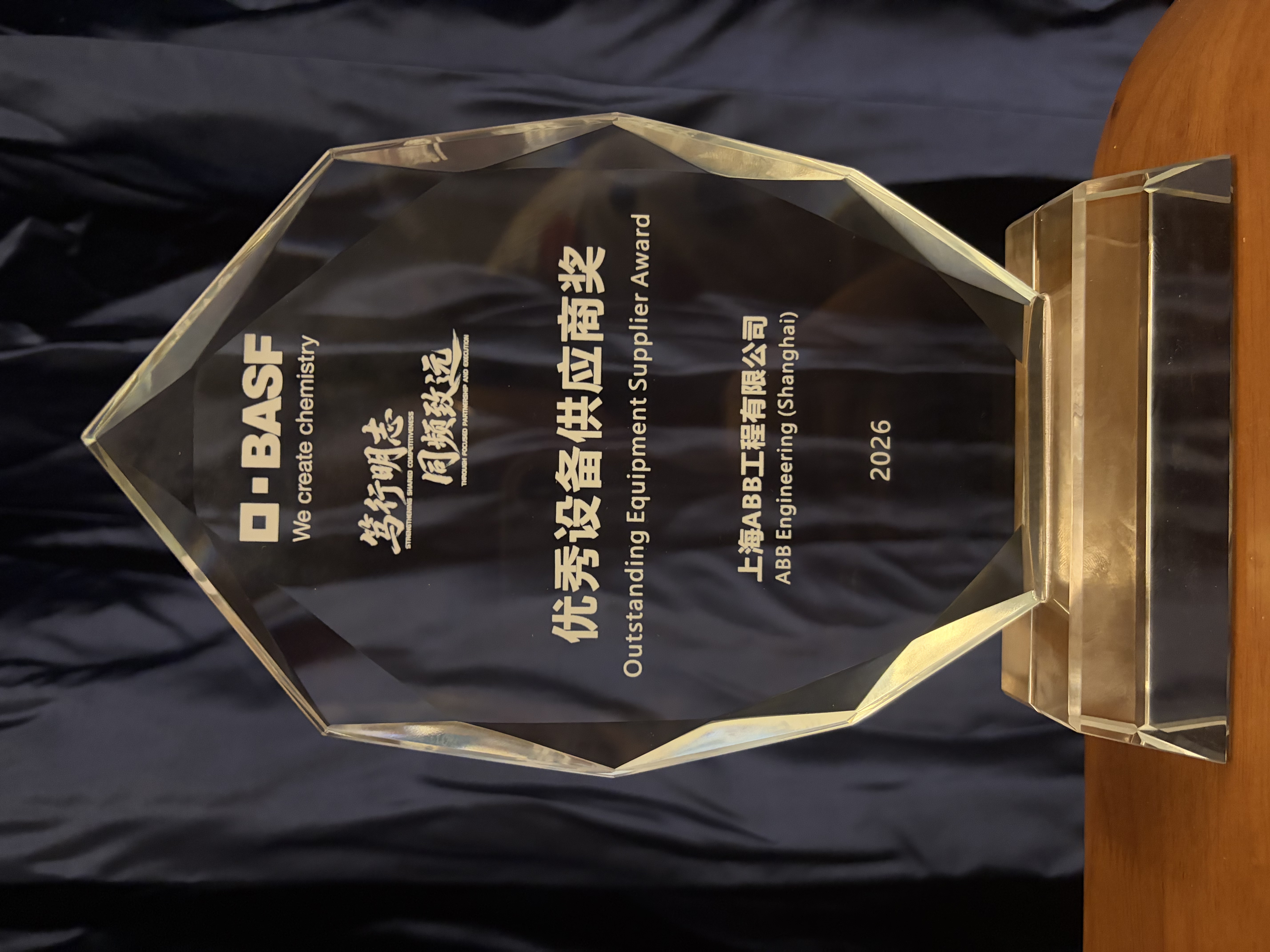 在巴斯夫湛江一体化基地于2026年3月26日宣布全面投产之际,作为该项目的核心自动化合作伙伴,ABB荣获其“优秀设备供应商”奖。该奖项旨在表彰项目中表现突出的优质供应商,既是对ABB的专业技术与服务实力的认可,见证了双方长期互利共赢的合作伙伴关系,也凸显了持续合作为双方不断带来的坚实价值。